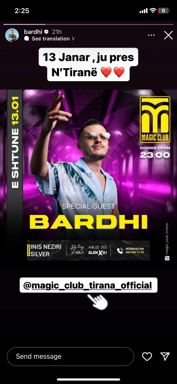 Me një foto në Instastory, Bardhi fton të gjithë fansat e tij në një klub në Tiranë , ku përkrah story-t shkruan: “ 13 janar ju pres në Tiranë.” Por a nuk do të rinis dhe BBVIP më 13 janar?! Sic duket lajmi për hyrjen e tij në reality paska qenë i rremë.