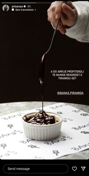 Arbana mendohet se iu kundërpërgjigj nëpërmjet një fotoje ku shkruajti: A do arrijë profiteroli të mundë rekordet e tiramisu-së?