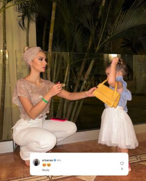 Ndërkohë, ditën e sotme Marina ka publikuar një foto të vajzës së saj Marget, ku i ka komentuar edhe Arbana duke shuar kështu zërat nëse moderatoret kanë nisur një “luftë” virtuale me njëra-tjetrën.