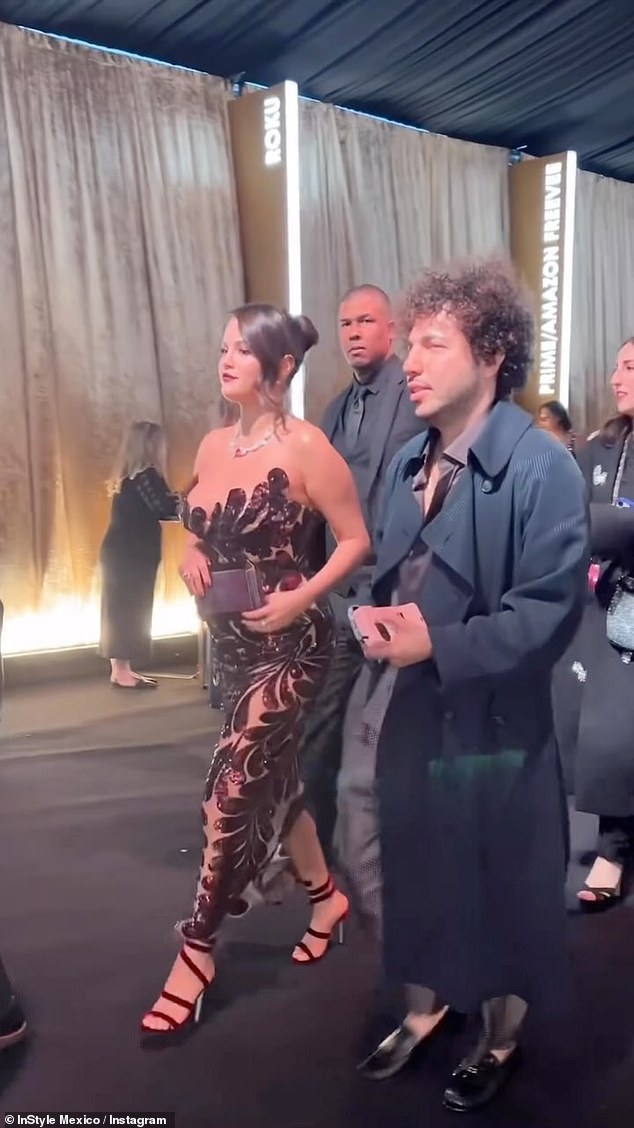 Selena shkëlqeu në këtë event, e veshur me një fustan Oscar de la Renta me tegela të tejdukshëm me detaje të zeza me lule. Nga ana tjetër, Benny kishte veshur një pardesy ngjyrë blu me një këmishë të zezë dhe pantallona gri.