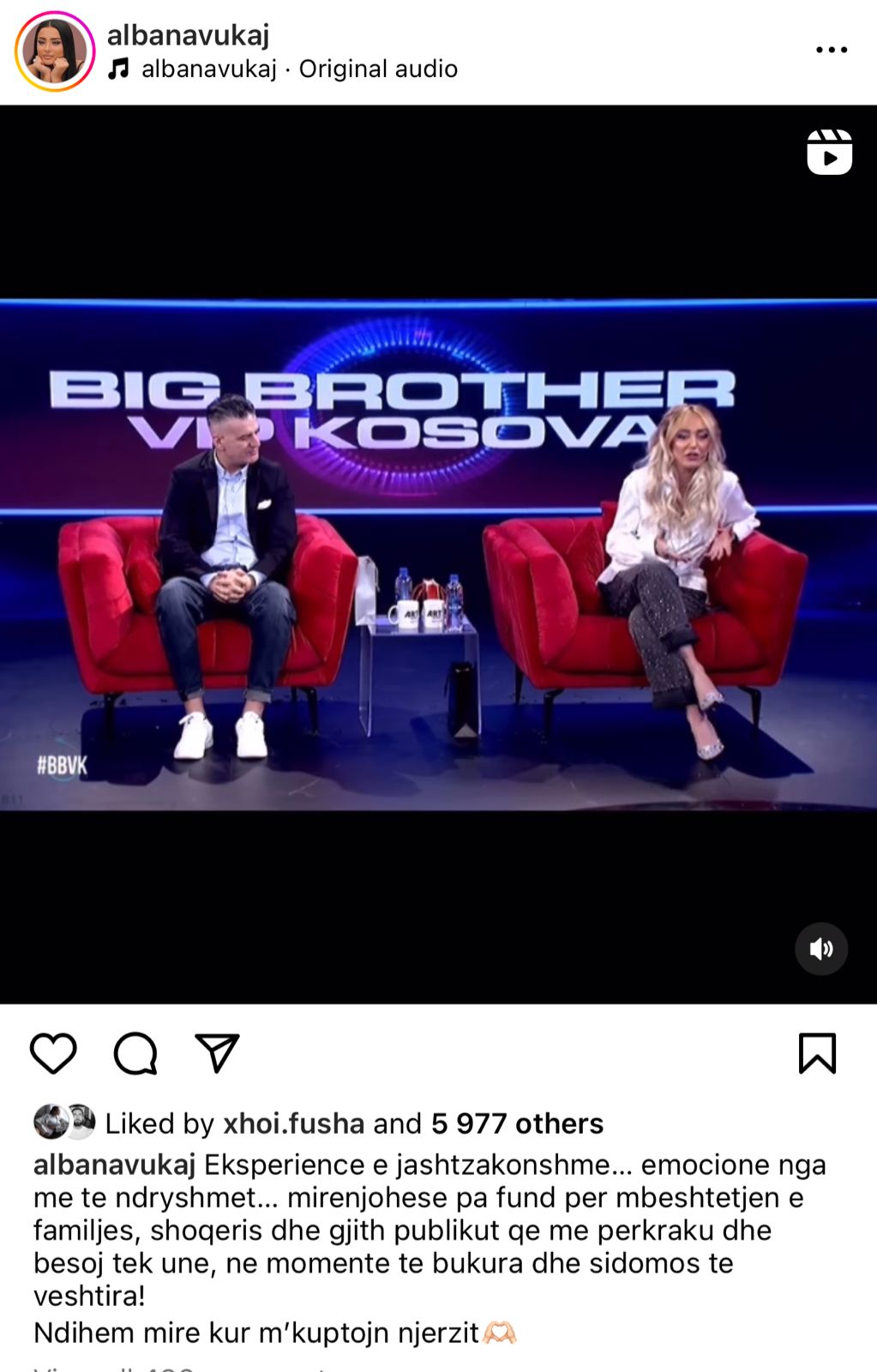 Spektaklit “Big Brother Vip Kosova 2” po i afron fundi dhe numri i banorëve në shtëpi po ulet. Kanë mbetur më pak se 3 javë nga finalja dhe publiku është mjaft kurioz se kush do të jenë 5 finalistët. Banorja e fundit e cila u largua nga shtëpia ditën e hënë ishte Alba Vukaj, një banore shumë e komentuar nga publiku. Alba ka reaguar dje përmes një postimi në Instagram.