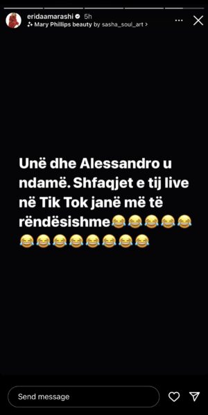 Erida: Unë dhe Aleksandros u ndamë. Shfaqet e tij LIVE në Tik-Tok janë më të rëndësishme.