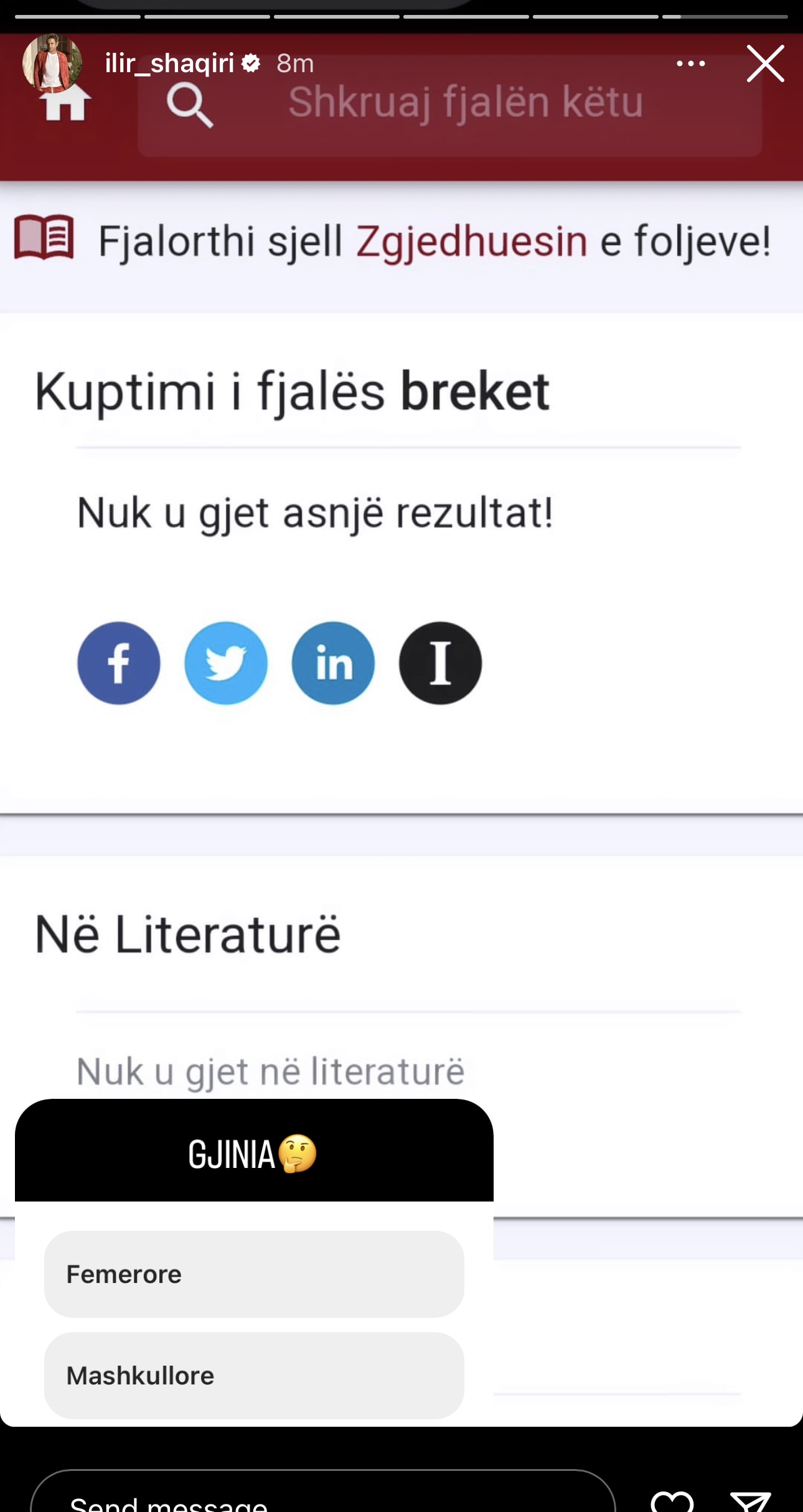 Sa i përket kësaj përplasje, një ironizim ka ardhur nga ana e fituesit të BBV1, Ilir Shaqiri, i cila ka bërë këto postime në InstaStory.