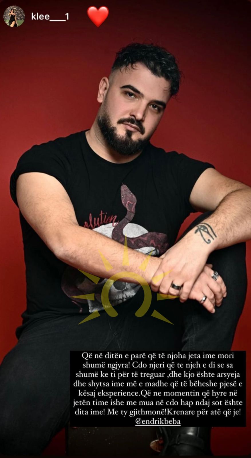 Por tashmë ai ësht i martuar me një vajzë që quhet Klea dhe ka një djalë 7-vjeçar. Klea ka postuar në Instastory-n e saj një dedikim mjaft emocionues për partnerin e saj, Endrikun. Ja çfarë mendon ajo në lidhje me hyrjen e tij në “BBV3”: