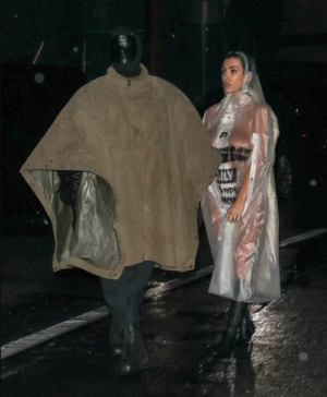 Nga ana tjetër, bashkëshorti i saj reperi, 46 vjeç, ishte mbuluar totalisht, teksa mbante veshur një bluzë të zezë dhe pantallonta poshtë palltos së tij, si edhe një palë doreza të trasha lëkure.