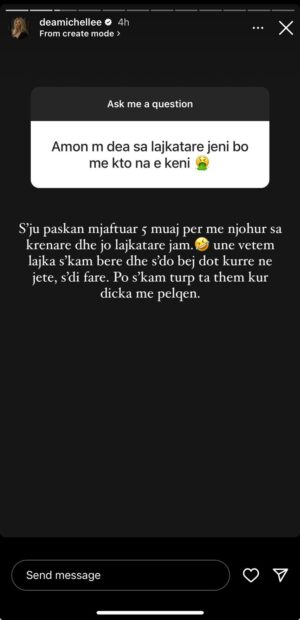 Madje në një tjetër postim, ku një person e ka quajtur ‘lajkatare’ Dea e mohon dhe shprehet se s’ka turp të pranojë diçka që i pëlqen!
