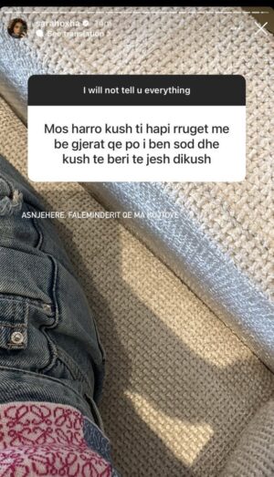 Në një intervistë “virtuale” në “Instastory”, Sara është ironizuar nga një ndjekës i cili i thotë të mos harrojë se kush i hapi rrugën drejt famës dhe e solli këtu ku është. Ironinë, blogerja ja ka kthyer me ironi ndjekësit duke i falenderuar që e kujtoi për këtë gjë.