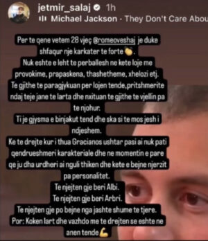 Por siç duket Jetmiri çfarë thotë jashtë nuk e thotë brenda pasi shikoni çfarë statusesh bënte për Romeon përpara se të ishte pjesë e garës: