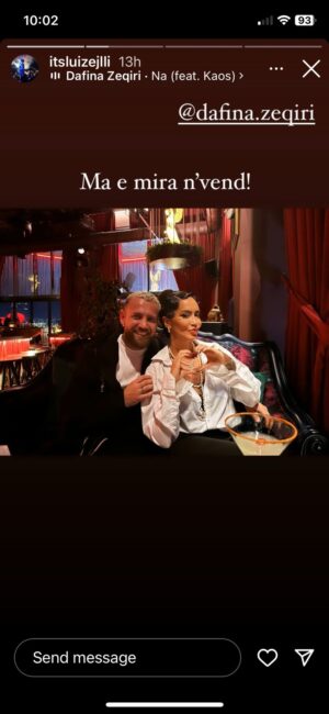Mbrëmjen e djeshme Luiz Ejlli ka postuar një foto me këngëtaren Dafina Zeqiri edhe pse nuk ka dhënë detaje të mëtejshme për takimin e tyre. Në mbishkrimin e fotos ai shkruan: