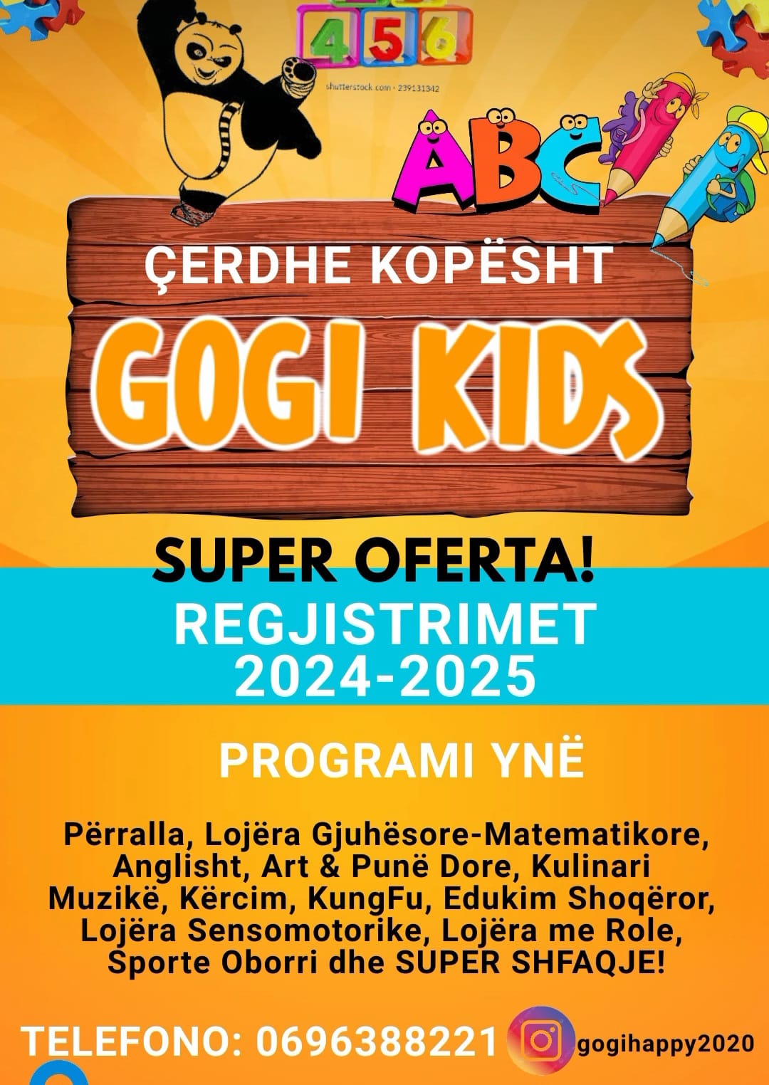 Me një program të larmishëm mësimor ku përfshihen aktivitete rekreative që nxisin zhvillimin motorik të fëmijëve, ku mund të veçojmë leximin dhe ritregimin e përrallave së bashku me të vegjëlit, vjershat e këngët shqipe që gëzojnë fëmijët e bëjnë krenarë prindërit në disa shfaqje artistike që organizohen brenda ambientit të kopshtit përgjatë vitit, shkronjat e numrat – dhe leximi për më të rriturit, e deri tek marrja e leksioneve në pikturë, art e punëdore, balet, piano dhe muzikë, kungfu, sporte të ndryshme oborri e tavoline, kulinari e gjuhë të huaj angleze me profesorë të specializuar, si edhe maratonën e programit veror plot hare e risi, të gjitha këto e bëjnë ‘’Gogi Kids’’ zgjedhjen e duhur për çdo prind dhe fëmijë.