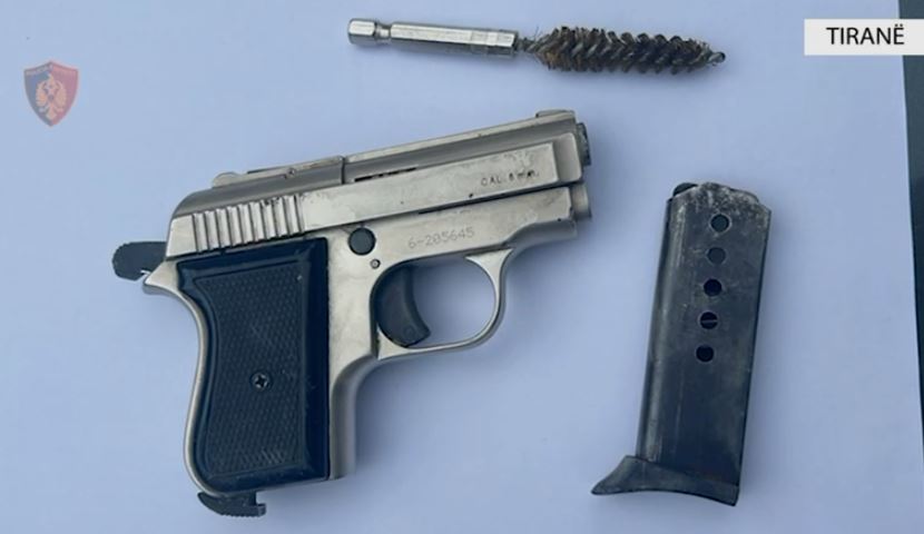 Gjatë kontrollit të garazhit dhe të banesës së 45-vjeçarit, në rrugën “Teodor Keko”, shërbimet e Policisë gjetën dhe sekuestruan në cilësinë e provës materiale, një armë zjarri pistoletë e modifikuar për ti vendosur silencator, një shkop gome si të policisë dhe 1 shkop bejsbolli.