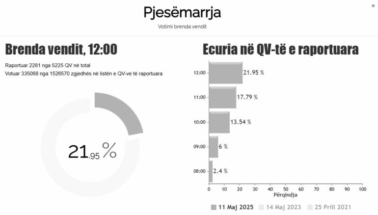 12:00 – Pjesëmarrja në votime deri në orën 12:00 arrin rreth 22%