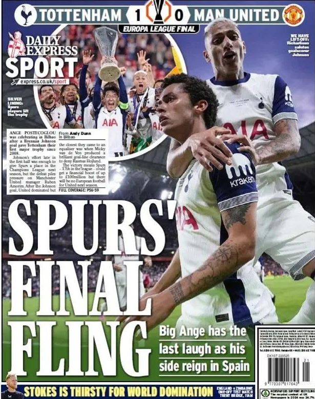 Pa diskutim që suksesi i Tottenham pushtoi edhe faqet e para të mediave angleze.
