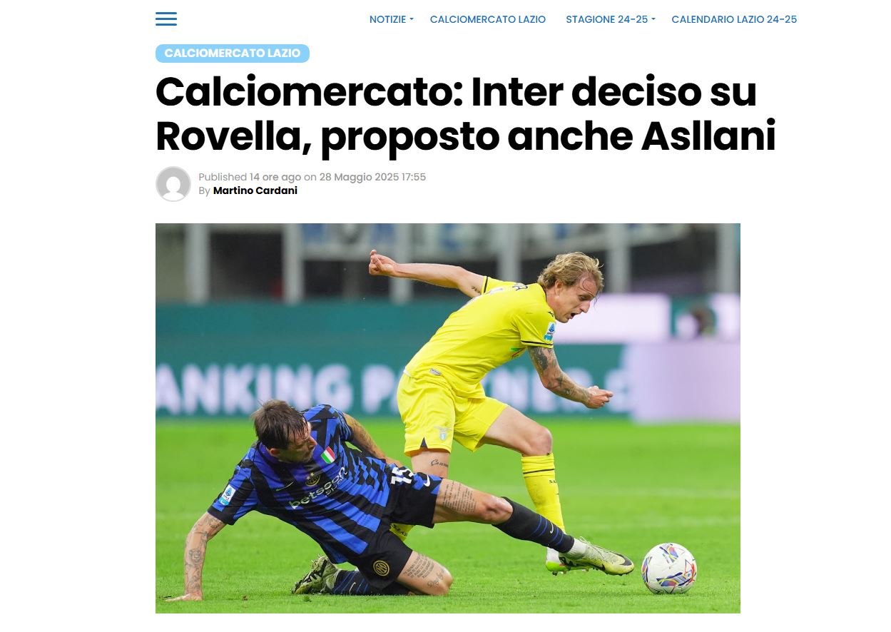 Ausilio dhe pjesa tjetër e stafit, po shohin për të gjetur një zëvendës të denjë për Calhanoglu. Asllani e ka mbuluar shpesh këtë sezon, por jo gjithnjë paraqitje e tij ka lënë një shije të mirë. Sipas DAZN, Inter ka gjetur një profil që i përshtatet shumë kërkesave të tyre, bëhet fjalë për mesfushorin e Lazio-s, Nicolo Rovella. Nga korriku i këtij viti, Rovella do të jetë lojtar i Lazio-s me kohë të plotë, pasi Lottito ka paguar 17 milionë euro për të blerë përfundimisht kartonin e tij nga Juventus.
