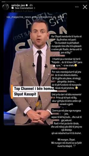 Ajo që duhej të ishte nisja e një aventure të re televizive për Shpatin, u kthye në një plagë të hapur për bashkëshorten e tij, Selvije Jao. Përmes një reagimi rrëqethës, Selvia ndau me publikun për herë të parë bisedën e fundit që kishin bërë rreth hyrjes së tij në Big Brother një bisedë që sot tingëllon si një paralajmërim i hidhur.