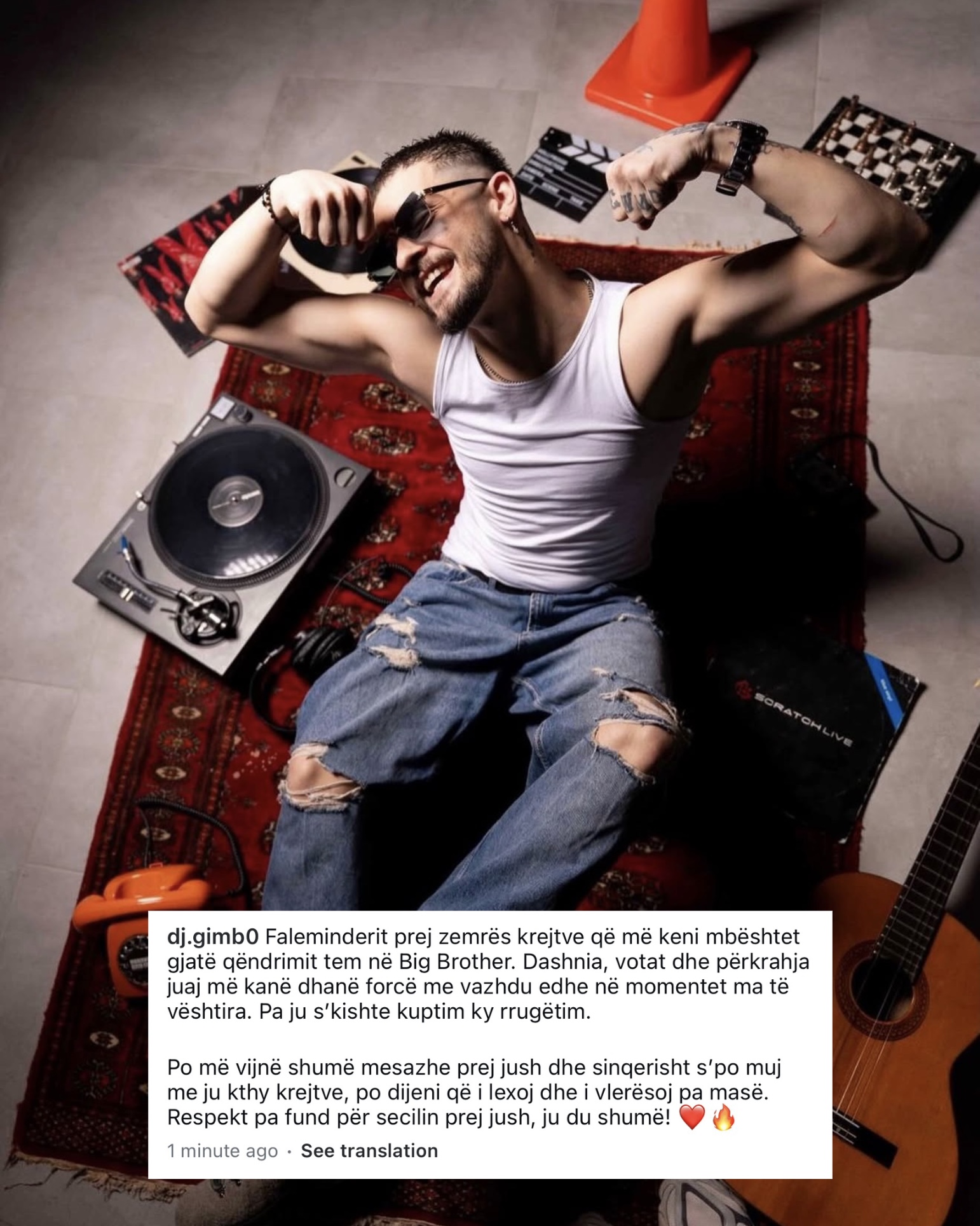 DJ Gimbo ka treguar gjithashtu se ka marrë një numër të madh mesazhesh nga ndjekësit, të cilat, pavarësisht se nuk ka mundur t’u përgjigjet të gjithave, i ka lexuar dhe i vlerëson maksimalisht. “Po më vijnë shumë mesazhe prej jush dhe sinqerisht s’po muj me ju kthy krejtve, po dijeni që i lexoj dhe i vlerësoj pa masë. Respekt pa fund për secilin prej jush, ju du shumë”, shtoi ai.