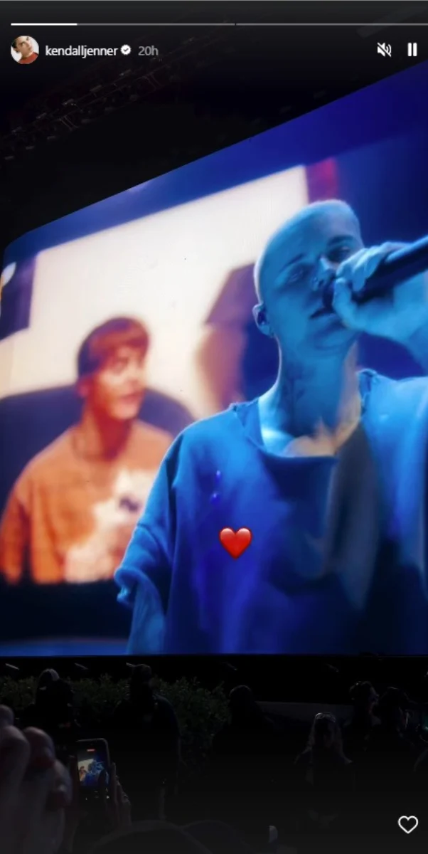 Kendall vendosi një emoji zemre mbi foton e fituesit të çmimit Grammy duke performuar hitet e tij të hershme si Baby, Sorry dhe STAY, të cilat i dhanë shtysë karrierës së tij si yll i muzikës pop që kishte fëmijë.